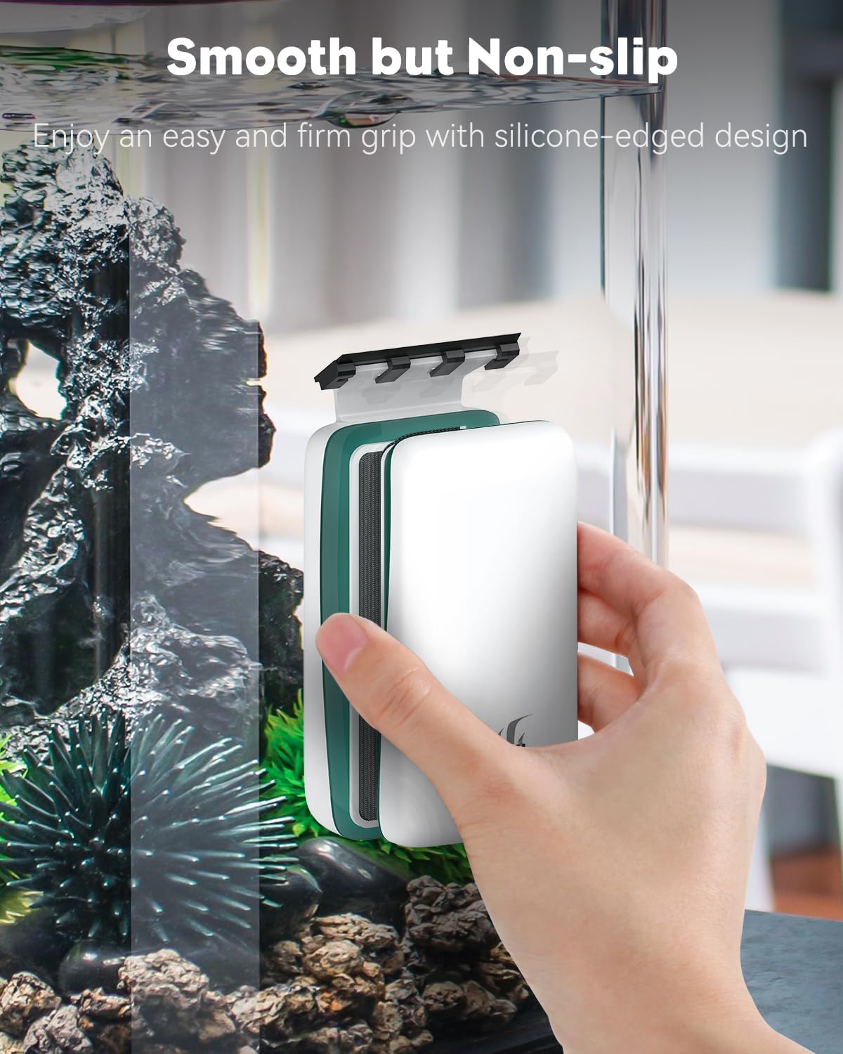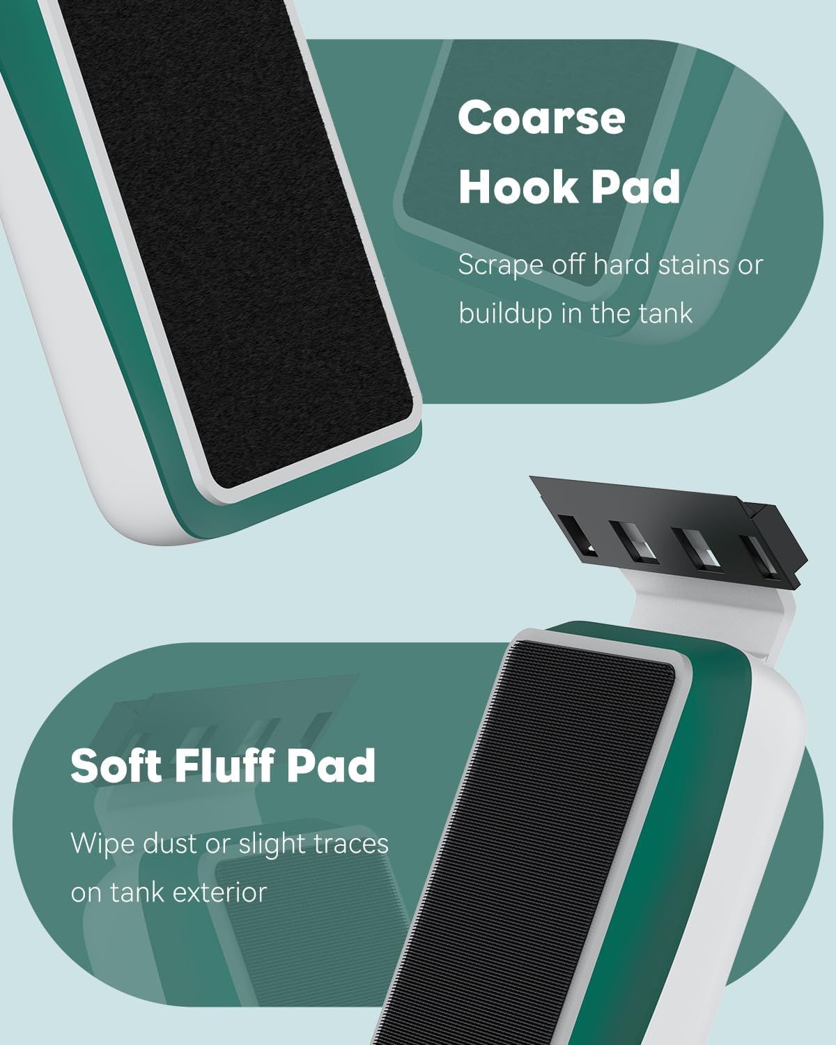 Double-Sided Aquarium Cleaner: The coarse pad effectively removes tough stains or buildup in the tank without scratching the glass. And the soft fluff pad wipes away any water spot or dust on the tank exterior. Thoroughly polish your aquarium to be see-through