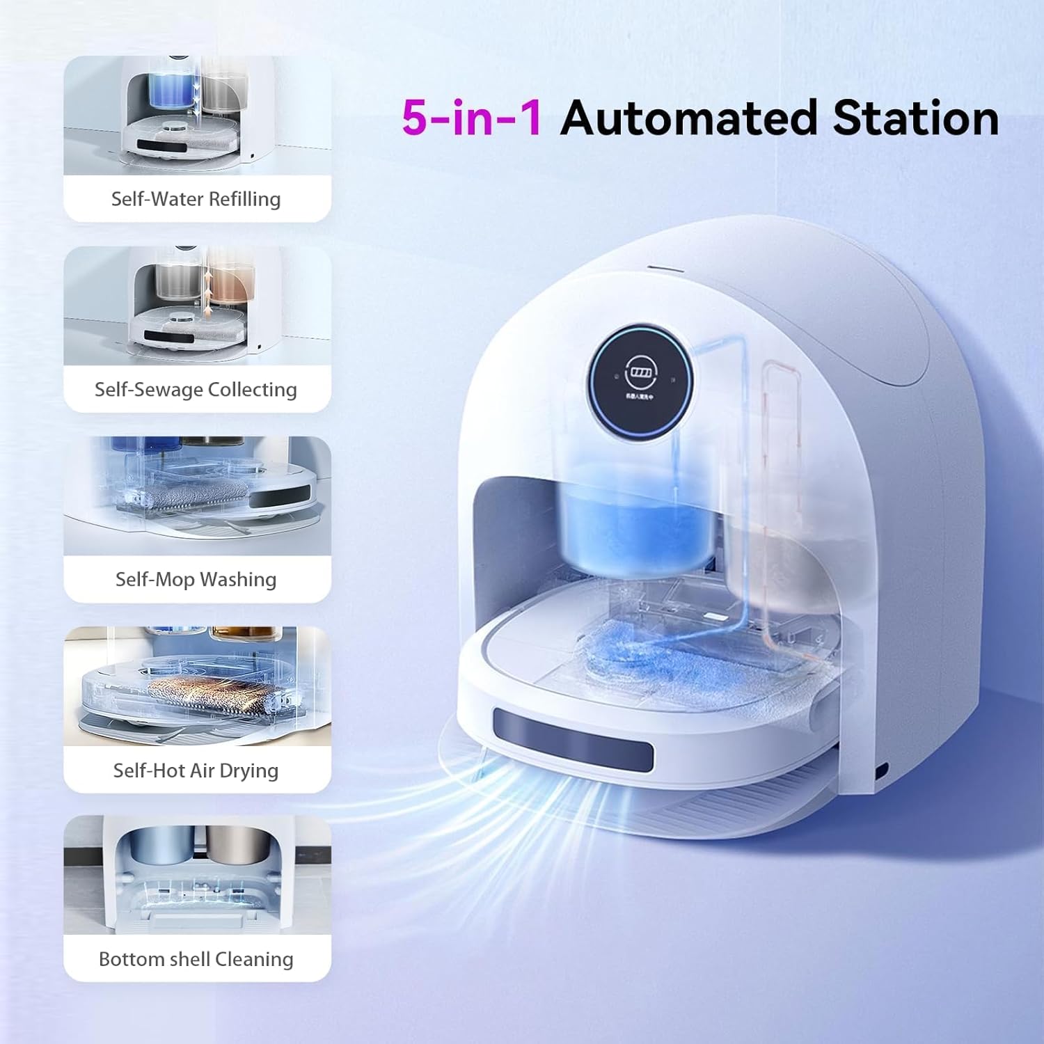 R2 Robot Vacuum and Mop Combo with Real-Time Cleaning Crawler Mop, Self Cleaning Station Self Filling Washing and Drying, Robot Vacuum Cleaner with LDS Lidar Navigation, Laser Obstacle Avoidance