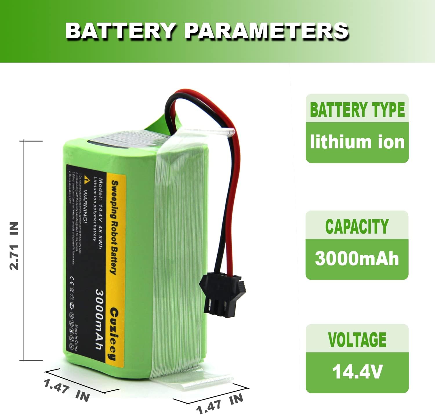 Replacement Battery for Eufy RoboVac 11, 11S, 30, 30C, 15C, 15T, 12, 35C, 15C MAX, for Ecovacs Deebot N79S, 500, N79, DN622, for Tesvor X500 Robot Vacuum Cleaners 14.4V 3000mAh