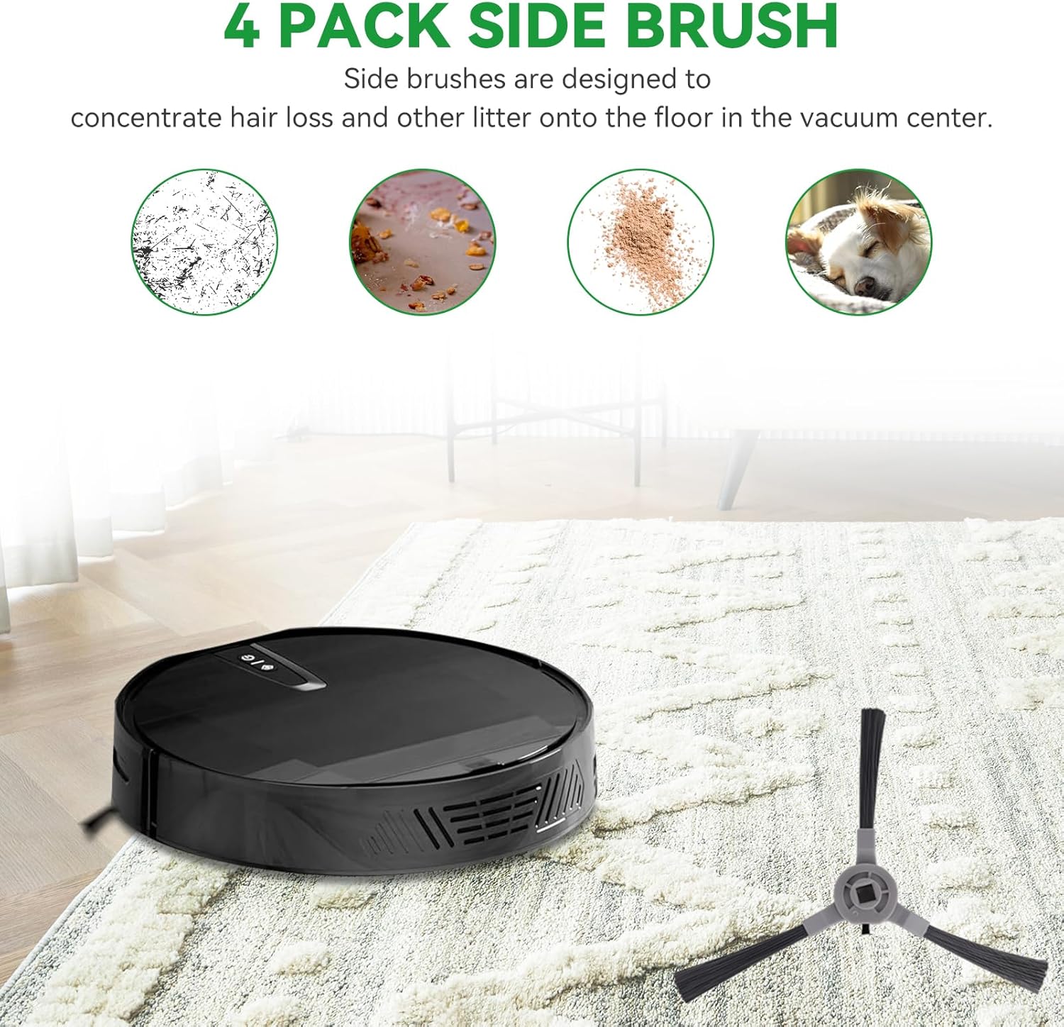 【High Efficient Cleaning】The three-armed side brush sweeps twice as much as the single-armed side brush during rotation, effectively clean dist,dust and debris from corners and edge.True HEPA filter absorbs 99.97 % of tiny particles such as finer dust,pollen,bring a more healthy environment for your home.