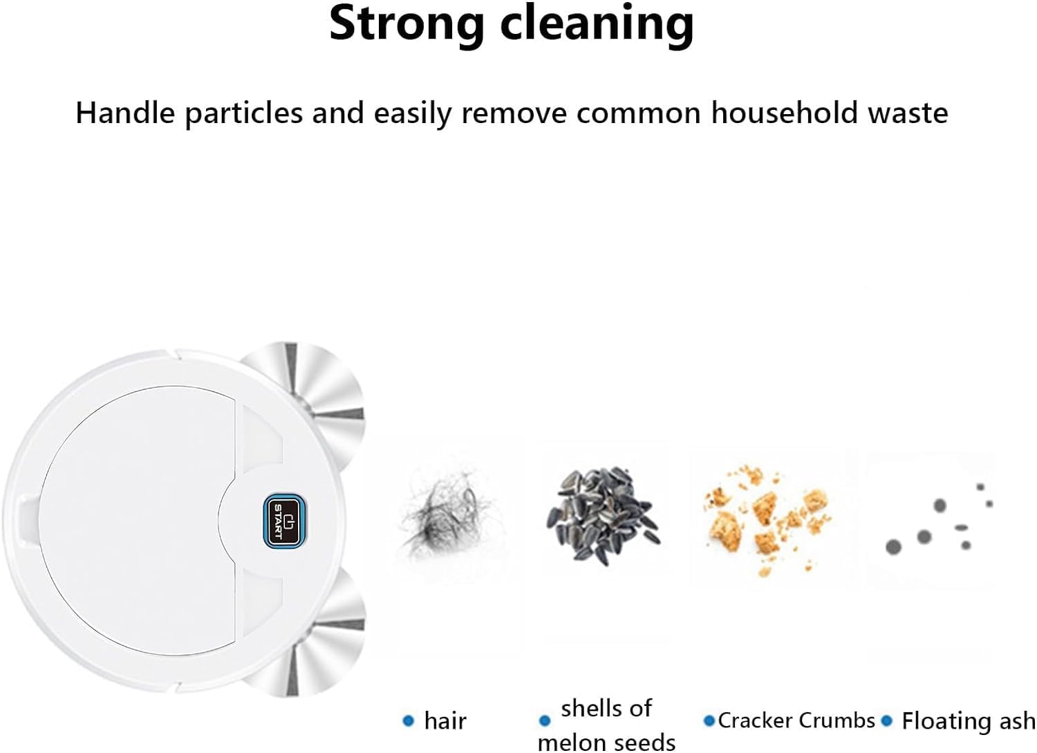 Robot Vacuum And Mop Combo, 3 In 1 Robotic Vacuum Cleaner With Watertank/Dustbin/Brush, Blocked By Hair, Ideal For Hard Floor/Pet Features: DUAL ROTATING BRUSHES:The robotic floor cleaner has 2 auto side sweeper brushes that extend the rea- of the vacuum and rotate to catch indoor dirt and debris in rooms corners and on tiles or hard wood floor. LONG BATTERY LIFE:This automatic vacuum cleaner robot has a high capacity battery of 2000mAh and a charging base. It could continuously work for 80 minutes to meet the cleaning needs from the living room to the bedroom. 2.4” ULTRA LOW :The white electric vacuum robot features a 2.4” thin low that vacuums through any dining room or kitchen floors and is small enough to under the furniture couch or bed in your house. DUAL ROTATING BRUSHES:The robotic floor cleaner has 2 auto side sweeper brushes that extend the rea- of the vacuum and rotate to catch indoor dirt and debris in rooms corners and on tiles or hard wood floor. VACUUMING SWEEPING DAMP :Maintain gleaming hard floors.New powerful motor with max mode and pet hair technology picks Product Description: Cleaning route: random Operation mode: mechanical Power mode: USB Rated voltage: 3.7V Rated power: 5W Rated frequency: 50HZ Applicable area: 120-150 meters The product includes: Sweeping machine * 1