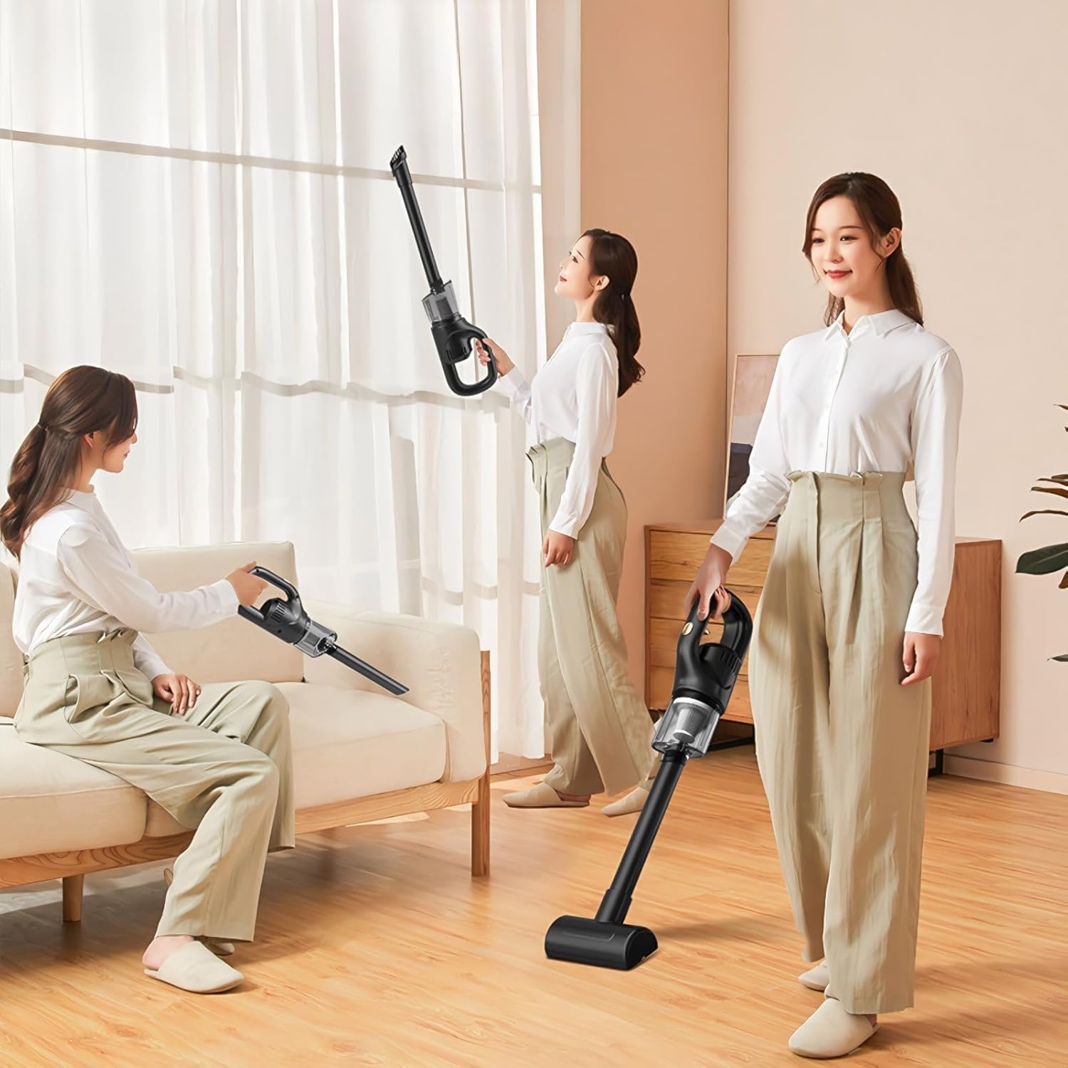 【Flexible and versatile】 The wireless vacuum cleaner can be converted into a handheld vacuum cleaner by removing the duct and equipped with a replacement crevice nozzle for continuous on various hard floors, stair windowsills, sofas and beds, desks and curtains, etc.