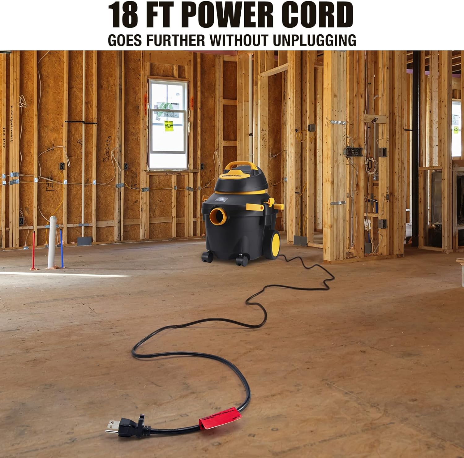 INCLUDED ACCESSORIES: 7‘ x 1-1/4″ Secure Fit Hose, (2) Extension Wands, (1) Dual Surface Selector Nozzle, (1) 10 In Wet/Dry Nozzle, (1) Gulper Nozzle,(1) Crevice Tool, (1) Round Brush, (1) Tool Storage Basket, (1) Cartridge Filter, (1) Filter Bag, (2) Foam Sleeves