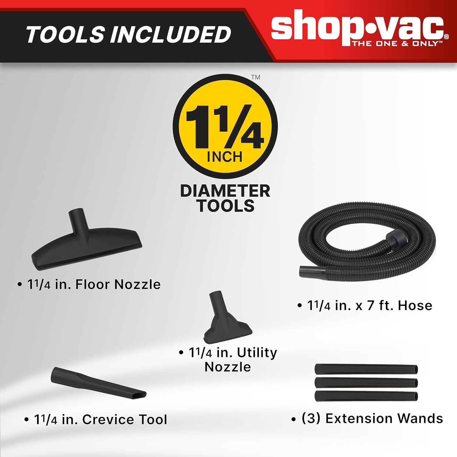 Shop-Vac 5985005 6 Gallon Wet/Dry Vacuum, 3.5 Peak HP, 1.25 Inch Diameter x 7 Foot Hose, 6 Foot Cord, Ideal for Home, Garage, and Workshop Cleaning
