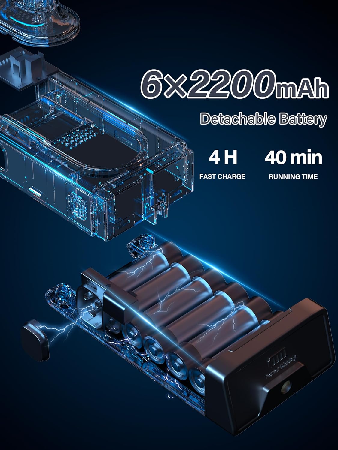 270° Rotation + LED Lighting: Vacuum cordless rechargeable features a 270° rotating head that allows you to get around obstacles and into tight spaces, and is equipped with an LED light that illuminates dark areas so that any dirt won’t go unnoticed
