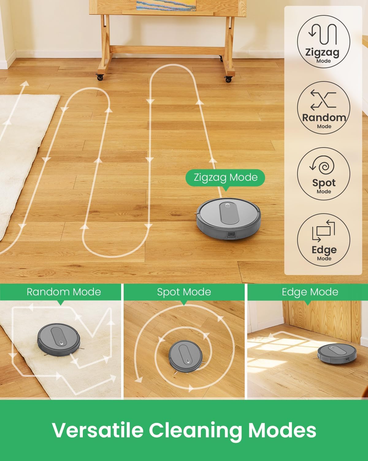【Powerful 2800Pa Suction】The Robot Vacuum Cleaner delivers up to 2800Pa of suction power in max mode, effortlessly picking up dust, debris, and pet hair from both hard floors and low-piled carpets. Perfect for families and pet owners seeking a high-efficiency clean.