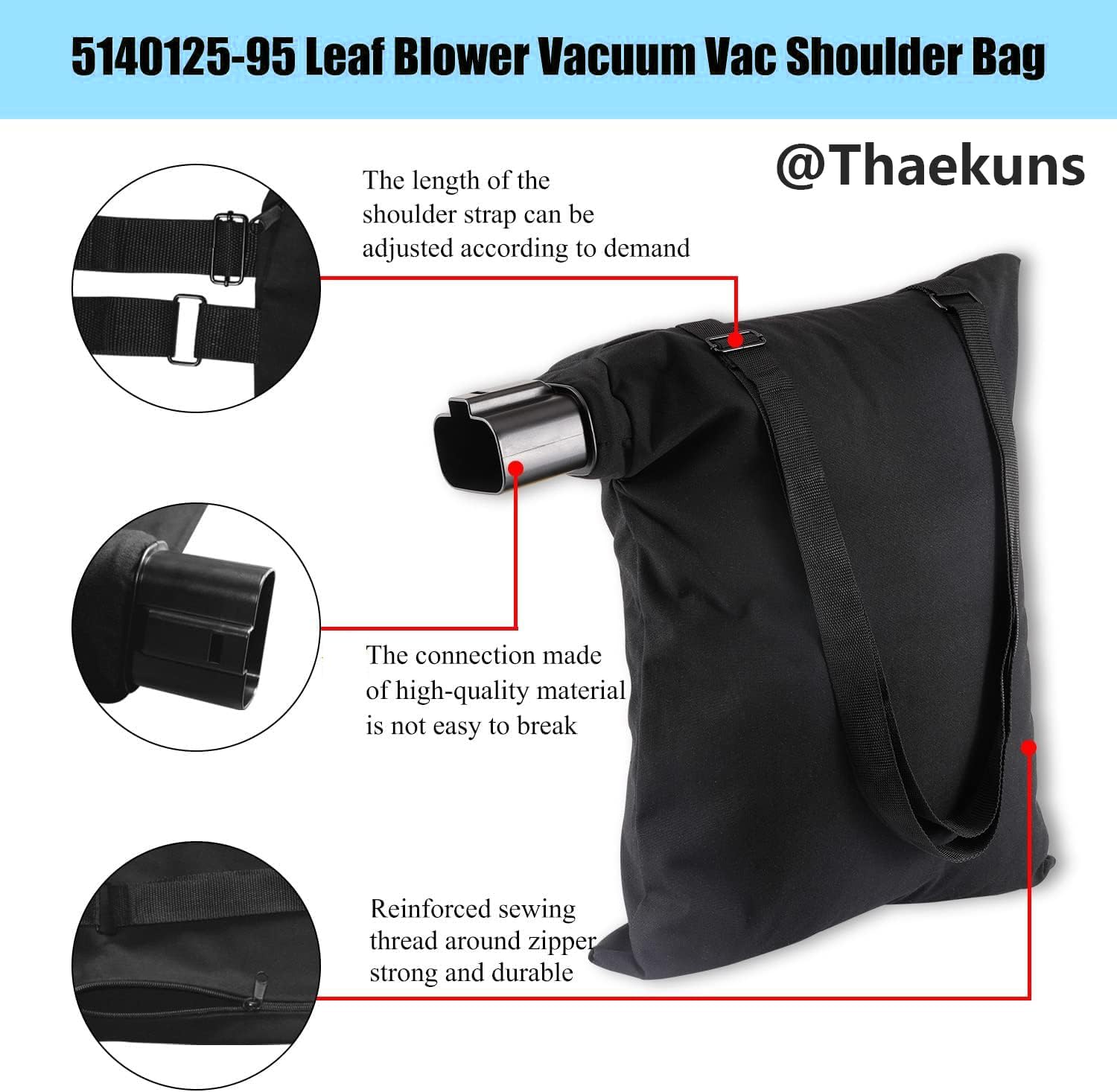 Thaekuns 5140125-95 Shoulder Bag, Leaf Blower Vacuum for Black & Decker BV3100