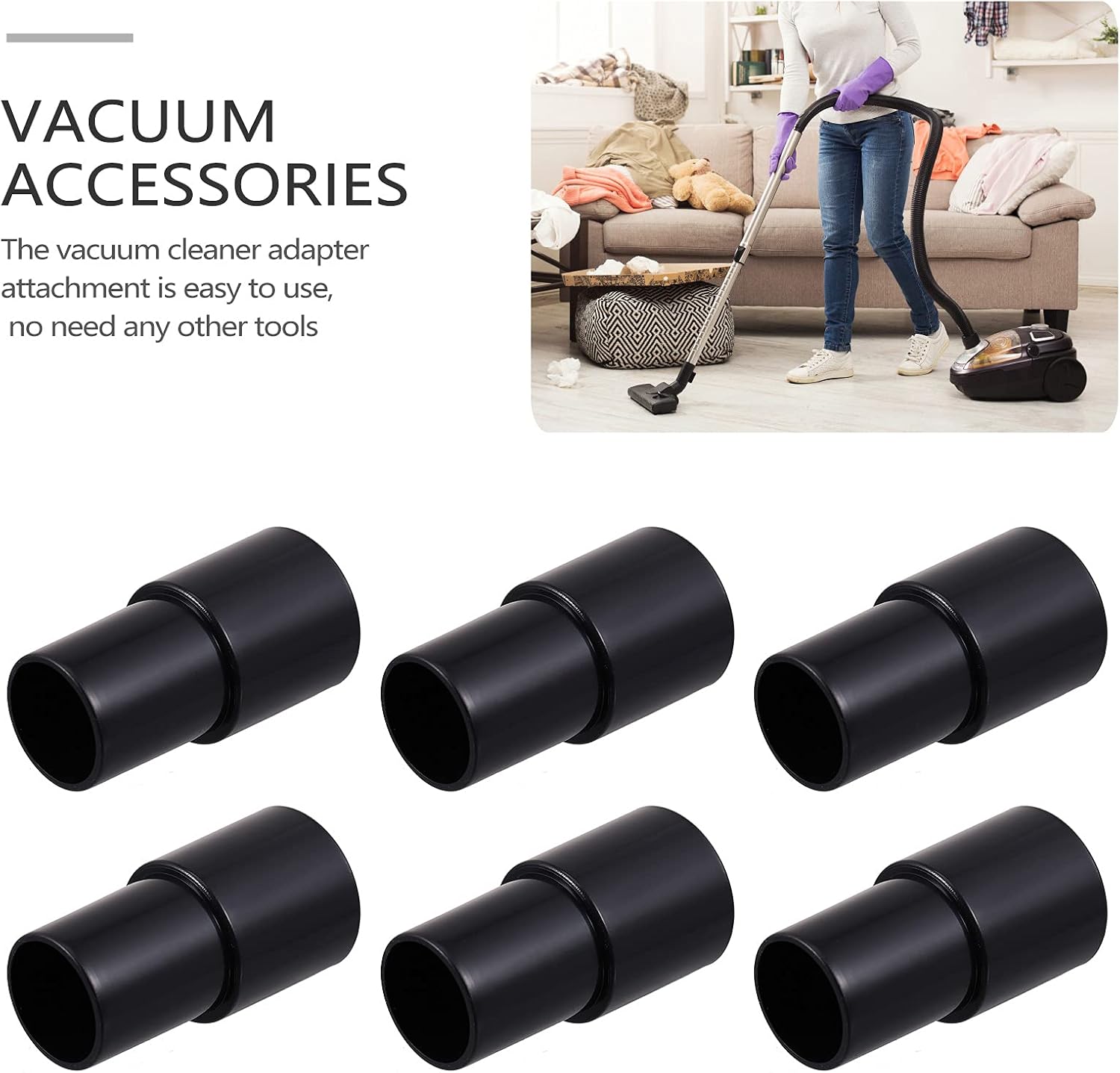 Description want a kind of vacuum cleaner hose connector adapter? want to use other diameter attachments? This can be . Compatible for a lot of vacuum cleaners, really practical and useful, just insert the end of the hose to change hose diameter. Features – Color: Black. – Material: ABS. – Size: 7. 50X4. 00X4. 00 cm/ 2. 95X1. 57X1. 57 inch. – Universal adapter for 32 mm ( 1 1/ 4 inch ) to 35 mm ( 1 3/ 8 inch ) vacuum hose. – They are practical tools for you, quality material can meet your long- time usage. – Made of quality plastic material, compact size and light weight. – The vacuum cleaner adapter attachment is easy to use, no need any other tools, you just need to insert the hose into the adapter and can complete. – The different brush heads connected can have different cleaning effect, such as floors, carpets, curtains and cleaning irregular surfaces, sofas and narrow areas. Package Including 6 x adapters