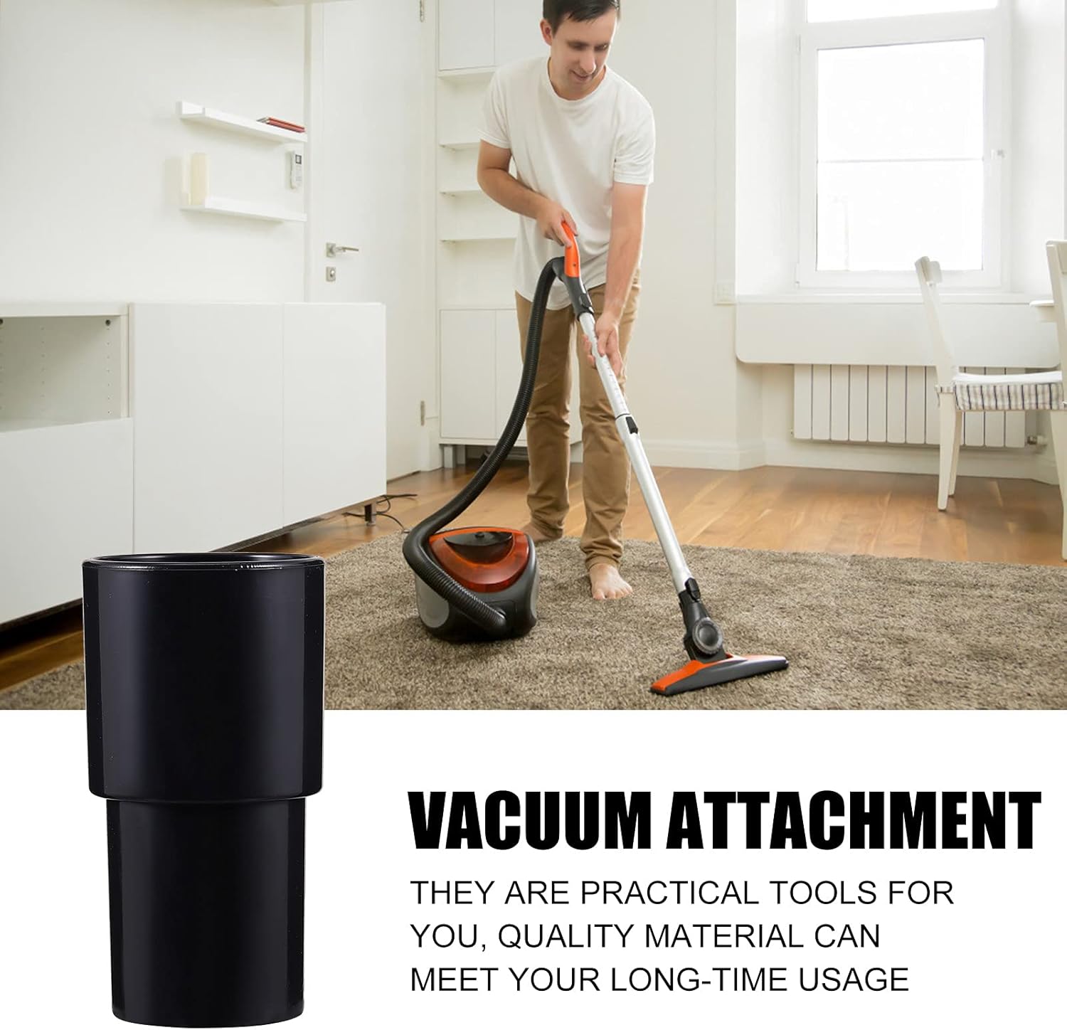 The vacuum cleaner adapter attachment is easy to use, no need any other tools, you just need to insert the hose into the adapter and can complete