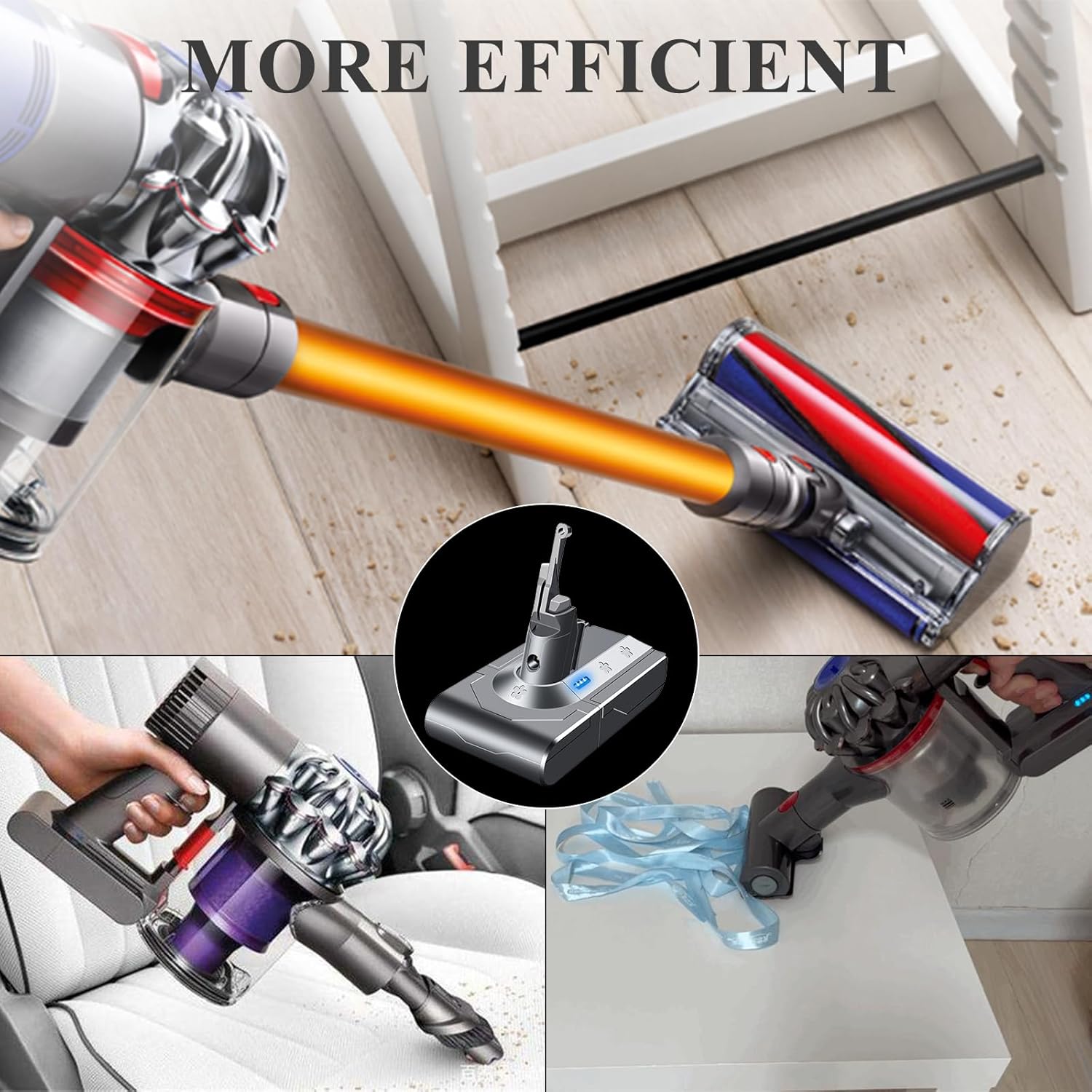 【Stable Power & Long Runtime】SPEC: Capacity: 4000mAh | Battery Type: Lithium-ion | Voltage:21.6V | Watt: 86.4Wh, which lasts longer than other V8 batteries on the market and has stronger suction. NOTE: please cool down the battery before recharging & using it