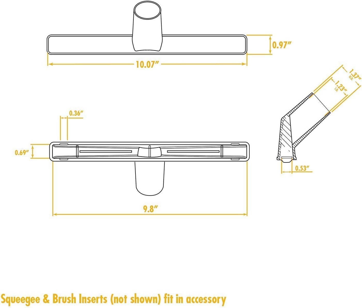 Versatility makes the Wet Dry Nozzle a unique tool among wet dry vacuum attachments. Use the squeegee insert to lift and capture water from hard surfaces, remove it and use it like a carpet wand to for flooded areas or pull water from carpets. Insert the floor brush and sweep and remove hard dry debris.